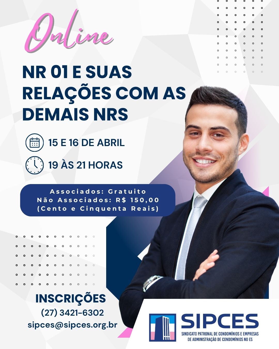 Dando continuidade à sua agenda de capacitações para 2026, o SIPCES realizará, no mês de abril, o curso “NR 01 e suas relações com as demais Normas Regulamentadoras”, voltado a profissionais que atuam na gestão condominial.