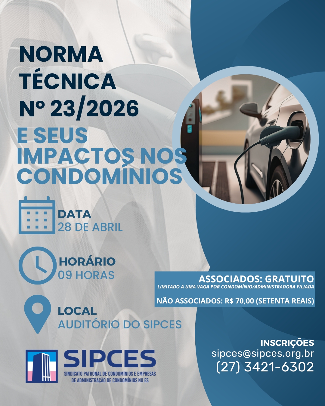 Com a recente publicação da Norma Técnica nº 23/2026 pelo Corpo de Bombeiros Militar do Espírito Santo (CBMES), que estabelece regras de segurança para garagens com sistemas de recarga de veículos elétricos (SAVE), o SIPCES realizará um encontro especial para esclarecer os principais pontos da nova regulamentação e seus impactos na gestão condominial.
